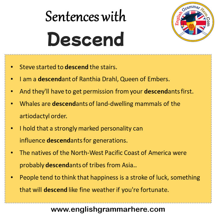 Sentences with Descend, Descend in a Sentence in English, Sentences For Descend
